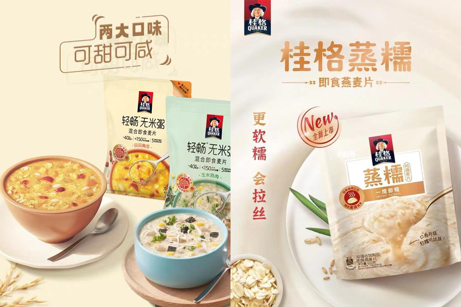 近日,桂格推出轻畅无米粥和蒸糯即食燕麦片两款即食燕麦片新品,市场参考价均为200g*1份/29.9元。