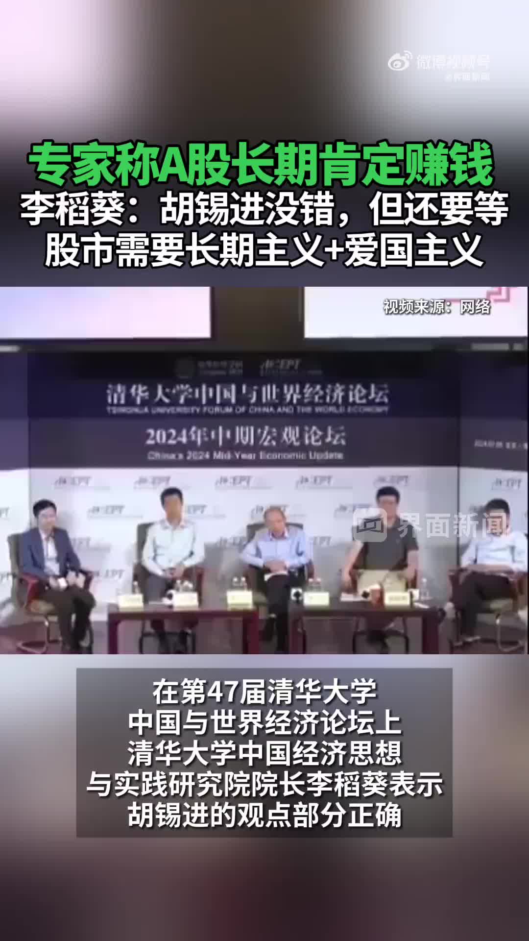 专家称A股长期肯定赚钱,李稻葵:胡锡进没错,但还要等,股市需要长期主义+爱国主义。