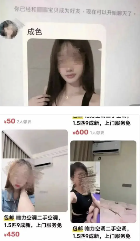 据羊城派、潇湘晨报报道,近日,有网友发帖称,在闲鱼网站搜索二手空调,发现有人打着售卖二手空调的名义,实际上链接里有美女图片,有涉黄擦边嫌疑。