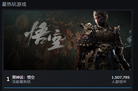 据财联社,国产游戏《黑神话:悟空》今日上午10时正式上线,截至目前,在Steam平台的在线玩家突破150万,在Steam所有游戏在线人数历史峰值中排名第四。