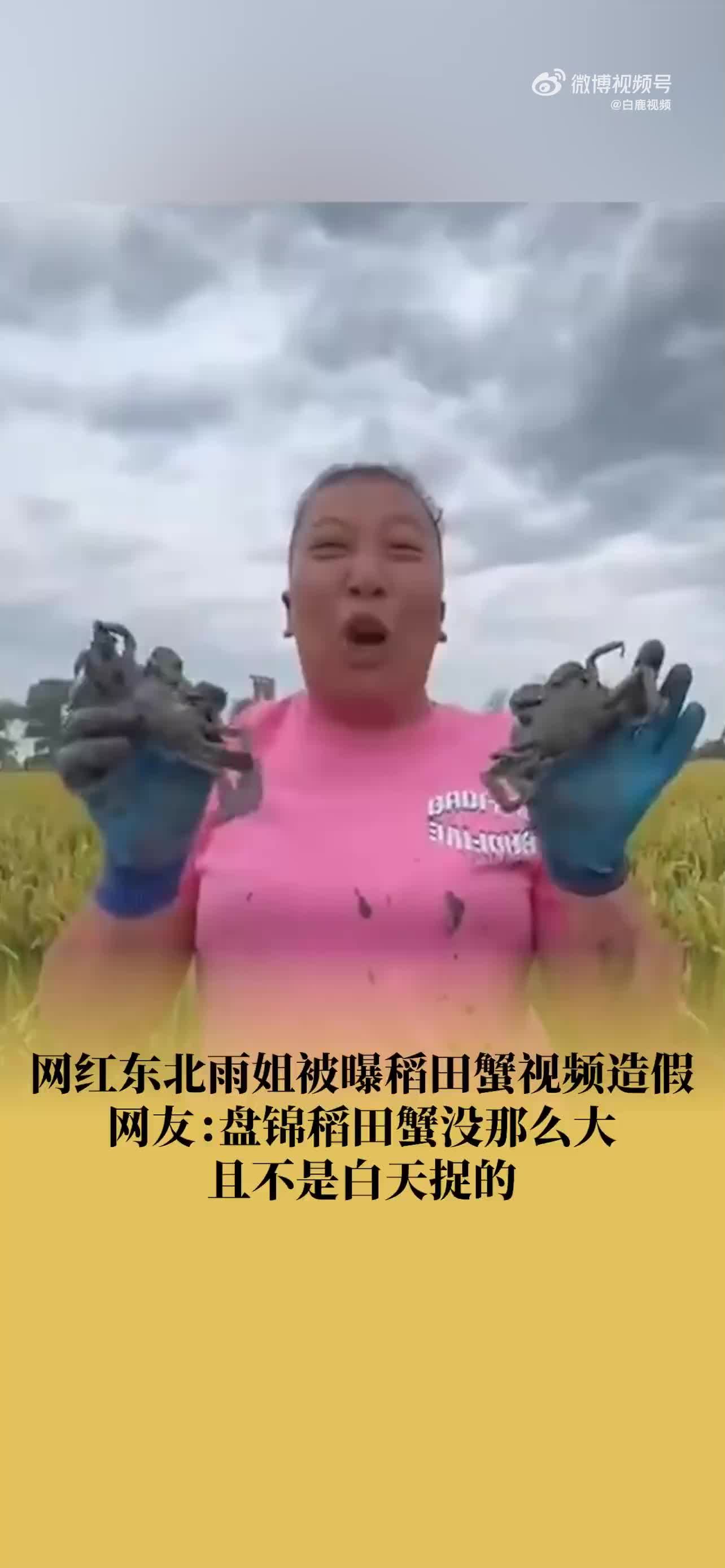 9月4日,东北雨姐发布的稻田蟹视频引起争议,部分网友自称当地养殖稻田蟹村民,在其评论区晒出诸多细节证据,如 “正宗的盘锦稻田蟹没这么大”、“都是晚上抓,没有白天抓的”、“稻田蟹没那么白净”等,证明东北雨姐所抓的稻田蟹是提前安排好的,存在摆拍造假。