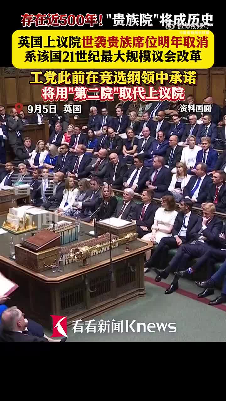 据英国《卫报》9月5日报道,存在了近500年的英国上议院世袭贵族席位明年将取消,这一决定也是英国进入21世纪以来最大规模的议会改革。英国上议院又称“贵族院”,于1544年被正式命名,其成员主要为英国贵族,以及英国国教大主教或主教。世袭贵族一般通过继承父母的贵族头衔获得在上议院的席位,职位为终身制。自19世纪以来,英国国会通过一系列法令限制和取消了上议院的大部分权力,仅保留了可延迟下议院法令一年再予以通过的“延宕性否决权”。 (via 看看新闻全球眼)