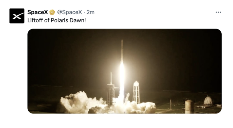 SpaceX发射载人飞船,试图完成首次私人太空行走。SpaceX发射了一枚搭载四名私人宇航员的火箭进入太空,这是旨在执行世界首次商业太空行走的开创性任务的一部分。