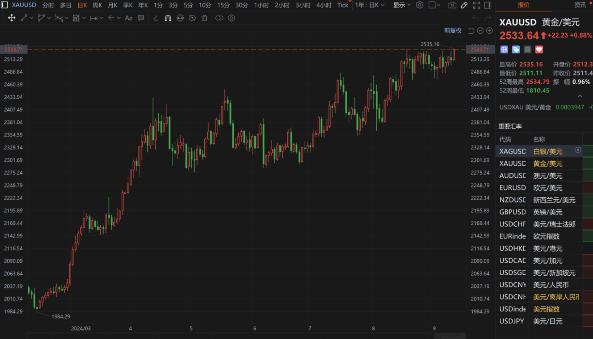 现货黄金刷新纪录新高至2535美元/盎司。