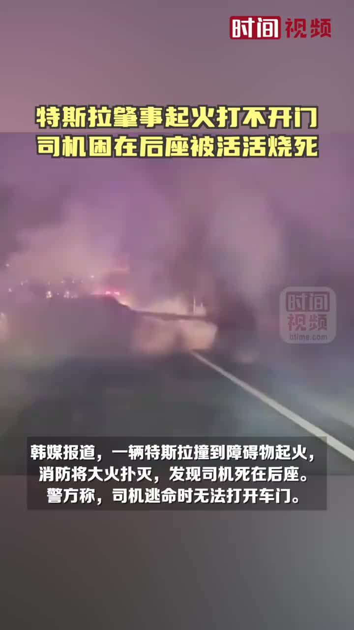 韩国一特斯拉肇事起火打不开门,司机困在后座被烧死。