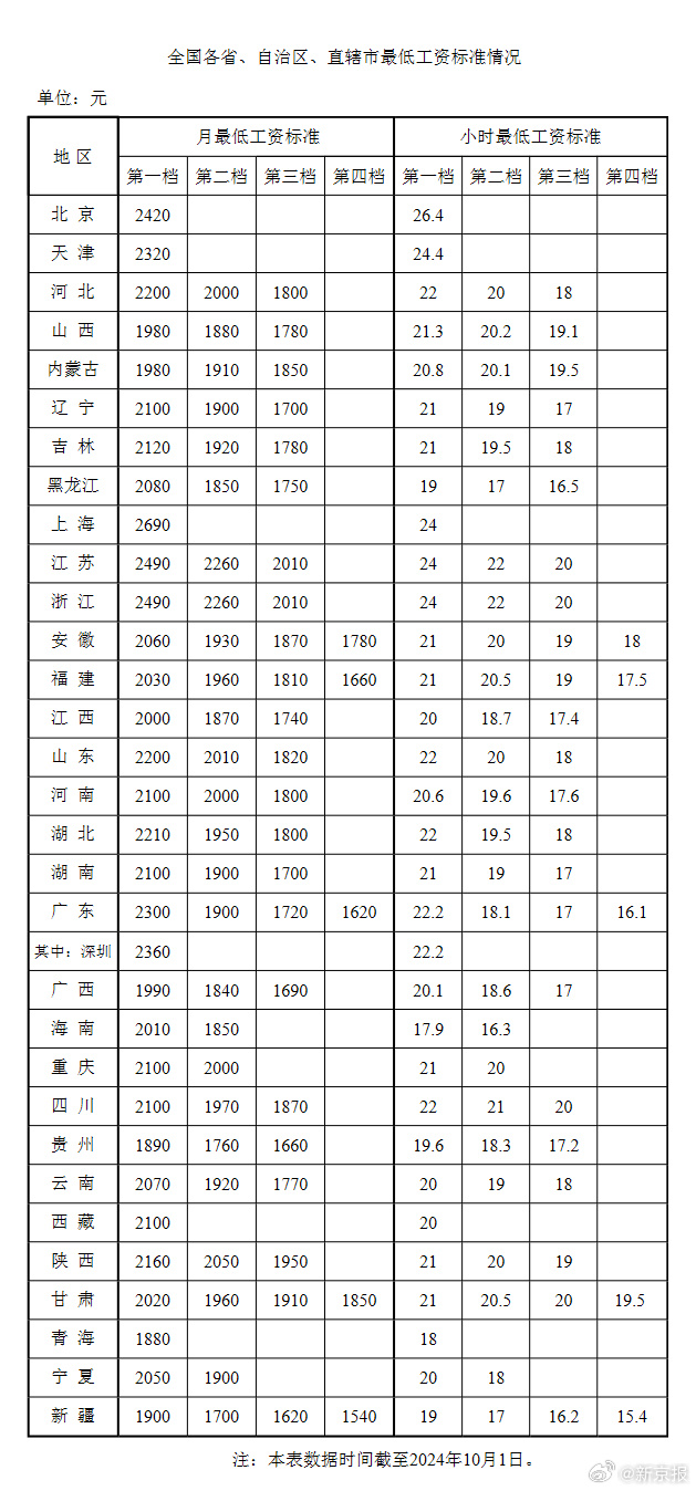 据新京报,近日,人力资源和社会保障部发布了全国各省、自治区、直辖市最低工资标准情况。数据显示,月最低工资标准方面上海最高,为2690元;江苏省、浙江省第一档月最低工资标准为2490元;吉林、湖南、云南等地均有所上调。