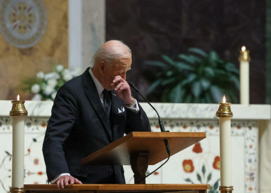 拜登出席埃塞尔·肯尼迪葬礼落泪,提到对方曾送自己“情人节贺卡”。