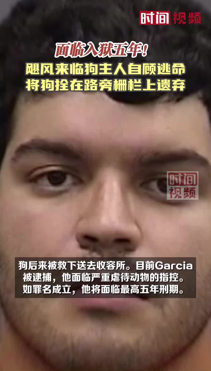 据Inside Edition报道,近日,美国佛罗里达州。飓风米尔顿登陆前,23岁狗主人Garcia将自己的狗遗弃,拴在路旁栅栏上,当时洪水不断上涨。狗后来被救下送去收容所。目前Garcia被逮捕,他面临严重虐待动物的指控。如罪名成立,他将面临最高五年刑期。据悉,据美媒16日报道,飓风米尔顿导致佛州25人死亡。 (via 时间视频)
