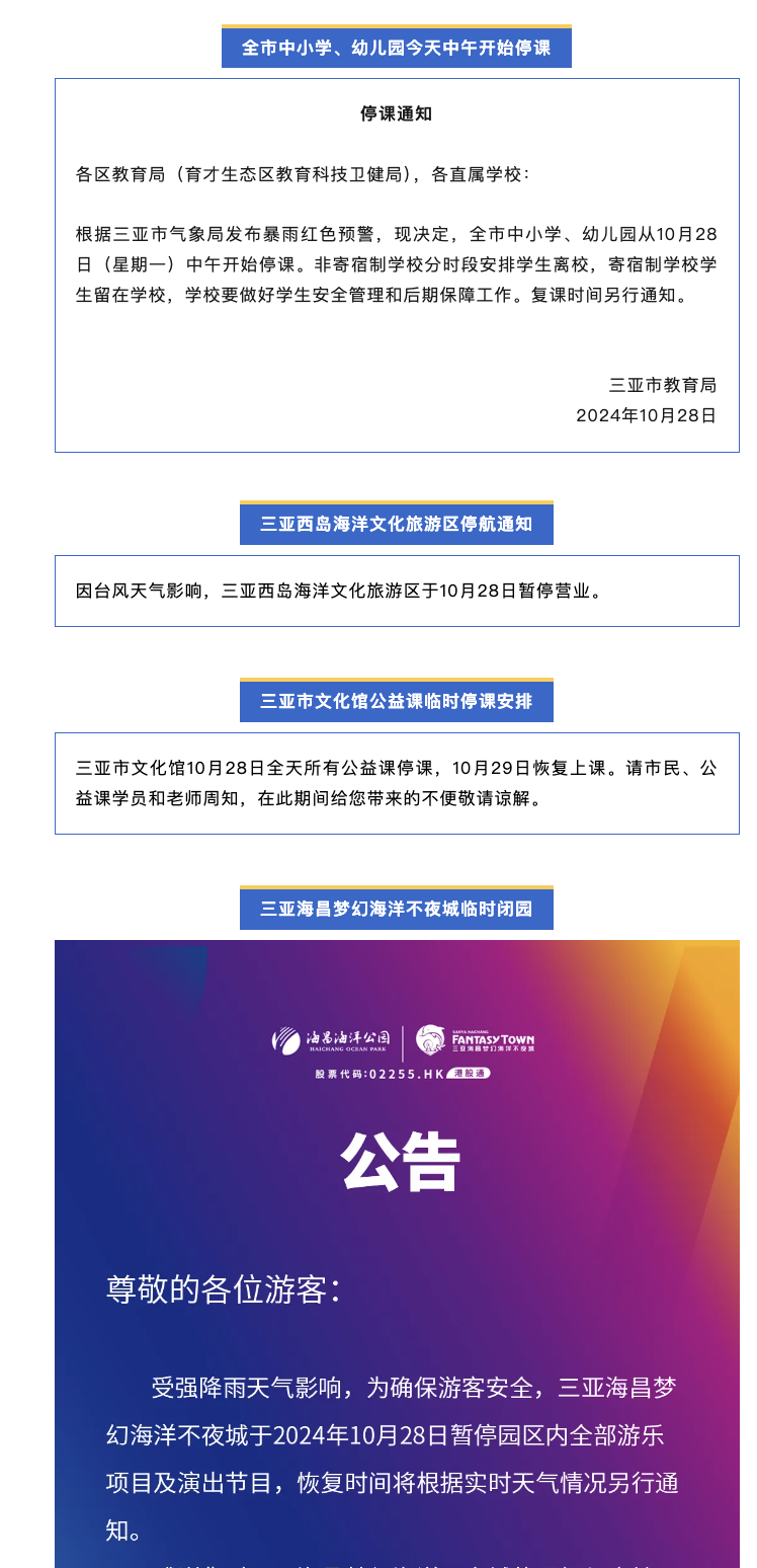 三亚全市中小学停课。