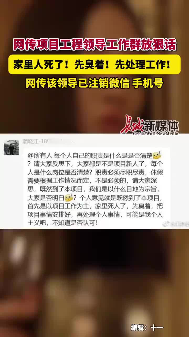 网传一项目领导放狠话“家里人死了先臭着”?目前账号已注销。