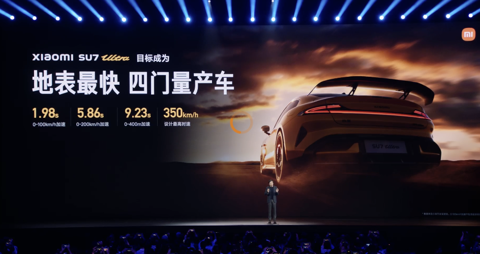 雷军:小米SU7 Ultra量产车零百加速1.98秒,最高时速350公里。