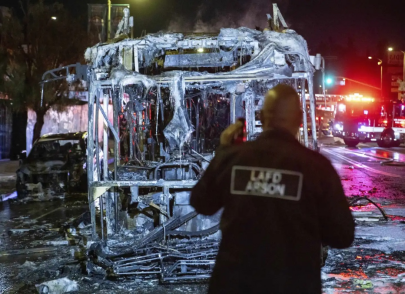 天空新闻网还提到,混乱中还有一辆巴士被焚烧。《洛杉矶时报》称,洛杉矶警察局一名警官表示,目前仍在找寻肇事者。针对此事,当地交通部门发表声明说,对巴士遭无理破坏的行为“感到失望和愤怒”。