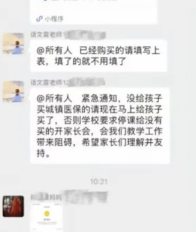 “不买停课”!班主任被指在家长群强推医保,当地回应。