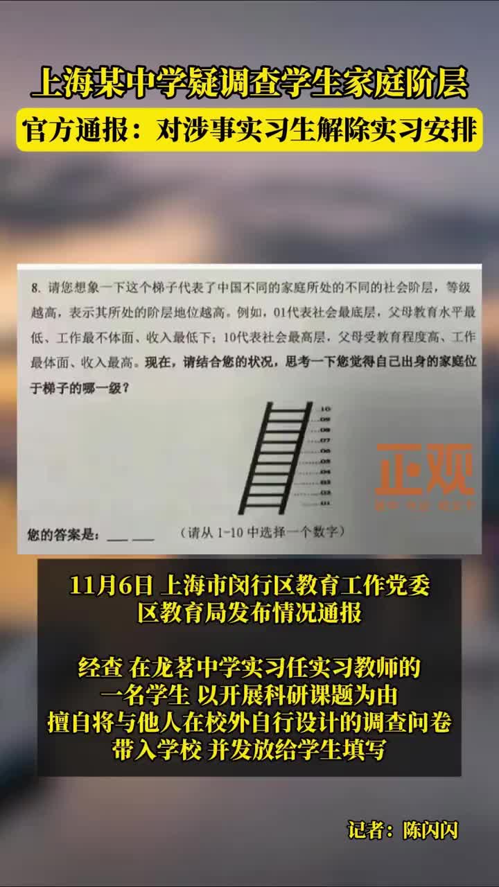 上海某中学疑似调查学生家庭背景阶层,官方通报。