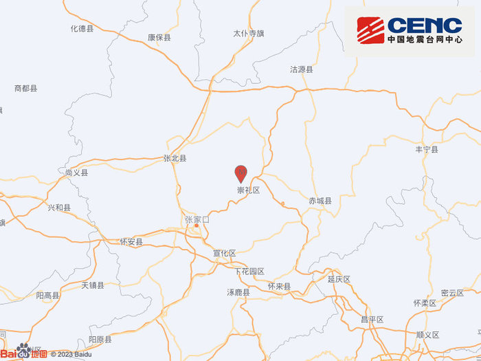 河北张家口市崇礼区发生3.6级地震,震源深度10千米。