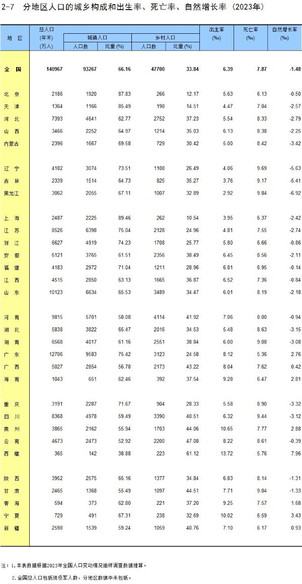 据第一财经,去年我国出生人口902万人,出生率为6.39‰。分省份看,2023年,各地的人口出生率、人口自然增长情况如何? 国家统计局编著出版的《中国统计年鉴2024》公布了去年31个省份的人口出生率、死亡率和自然增长率数据。