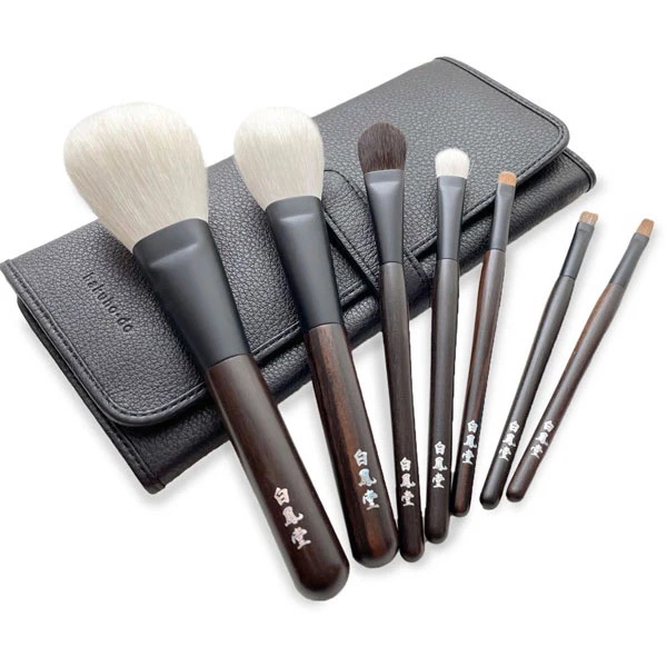 从白凤堂天猫旗舰店陈列的产品链接来看,其化妆刷外形与日本白凤堂官网陈列的化妆刷套装颇有相似之处。比如,二者都会在化妆刷的握笔端印上“白鳳堂”的品牌标志,不过日本白凤堂更经常使用“HAKUHODO”的英文译名。