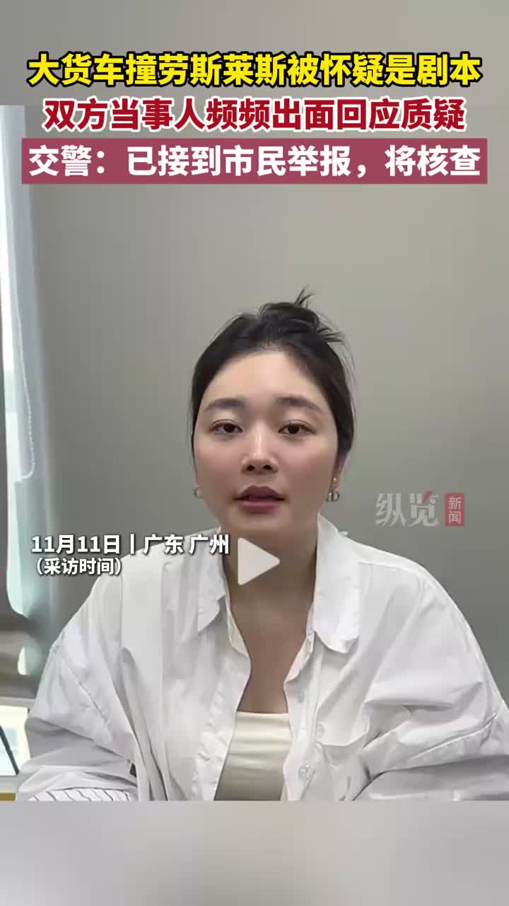 广州交警回应大货车撞劳斯莱斯事件:已接到举报,将核查。