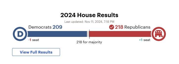 当地时间11月11日,美国《国会山报》最新数据显示,美国共和党目前在众议院赢得218个席位,已过半数,取得众议院控制权。这意味着共和党大获全胜,赢得此次大选参众两院控制权和总统选举。