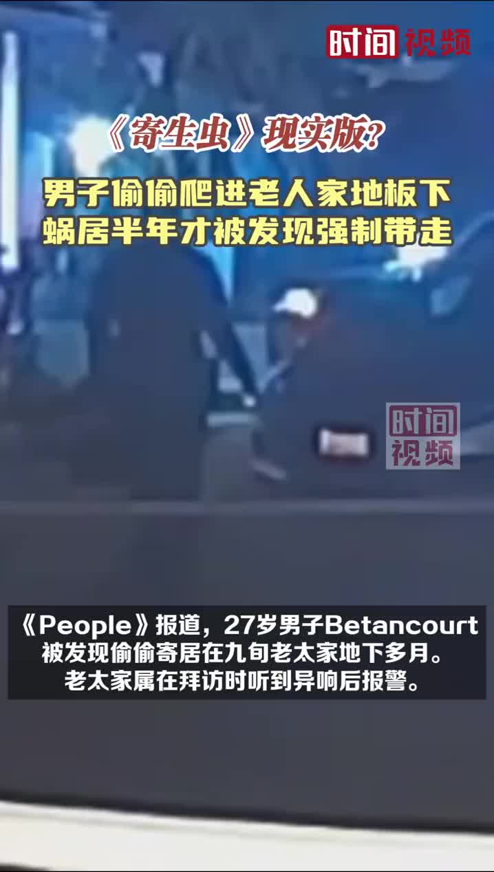 据《People》报道,近日,美国加利福尼亚州27岁男子Betancourt被发现偷偷寄居在九旬老太家地下多月。老太家属在拜访时听到异响后报警,怀疑男子住了多达6个月。警方在房外发现一个洞,男子通过洞爬进房子地板下方生活。目前男子已被警方强制带走。 (via 时间视频)
