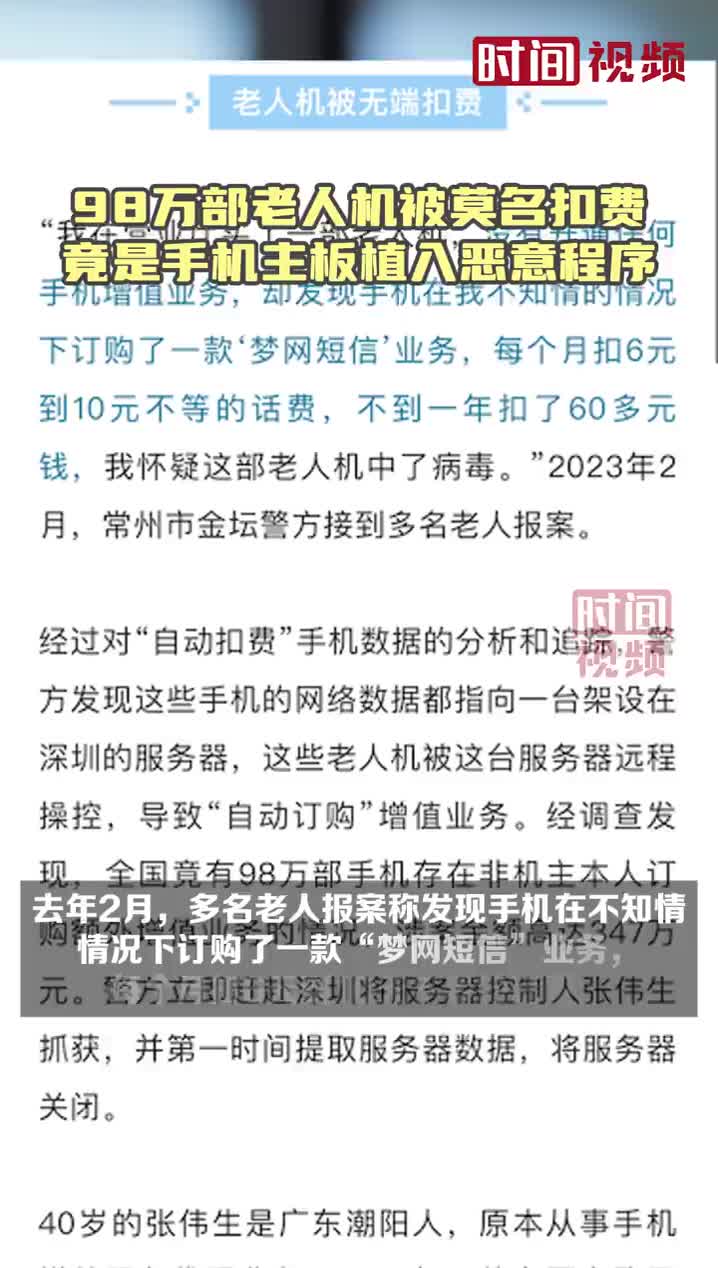 涉案金额达347万元!全国98万部老人机被莫名扣费:竟是手机主板被植入恶意程序。