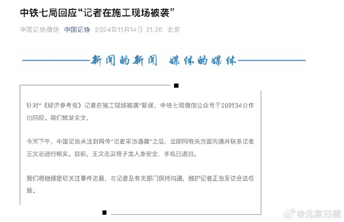 据北京日报,中国记协微信公众号:今天下午,中国记协关注到网传“记者采访遇袭”之后,立即同有关方面沟通并联系记者王文志进行核实。目前,王文志及程子龙人身安全,手机已退回。我们将继续密切关注事件进展,与记者及有关部门保持沟通,维护记者正当采访合法权益。
