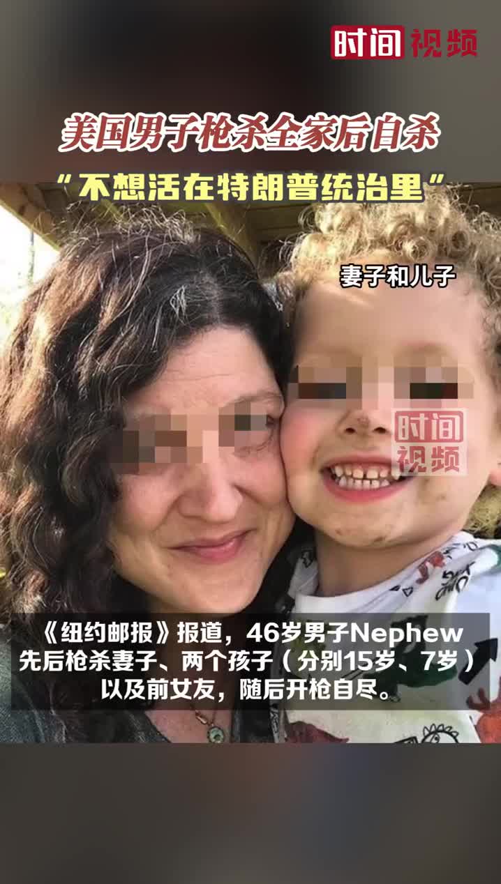 据《纽约邮报》报道,近日,美国明尼苏达州。46岁男子Nephew先后枪杀妻子、两个孩子(分别15岁、7岁)以及前女友,随后开枪自尽。警方表示,Nephew长期患有精神疾病。事发前,他曾多次发表反对特朗普言论,并在总统大选结果出炉后态度消极。Nephew称,不想让妻儿生活在特朗普统治的时代。警方认为大选结果或导致了他的精神状态恶化。(via 时间视频)