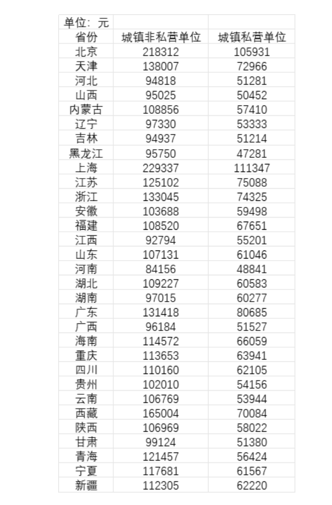 31省份平均工资:上海最高超22万元,21省份非私营单位超10万。