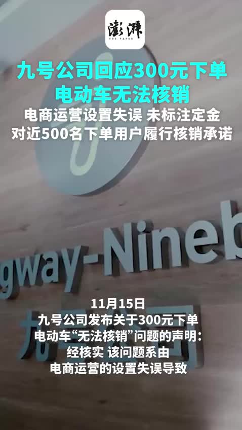 300元抢6399元电动车提车被拒?涉事公司回应。11月15日,九号公司发布关于300元下单电动车“无法核销”问题的说明:经核实,该问题系由电商运营的设置失误导致,将对近500名下单的所有用户履行核销承诺。(via 澎湃新闻)