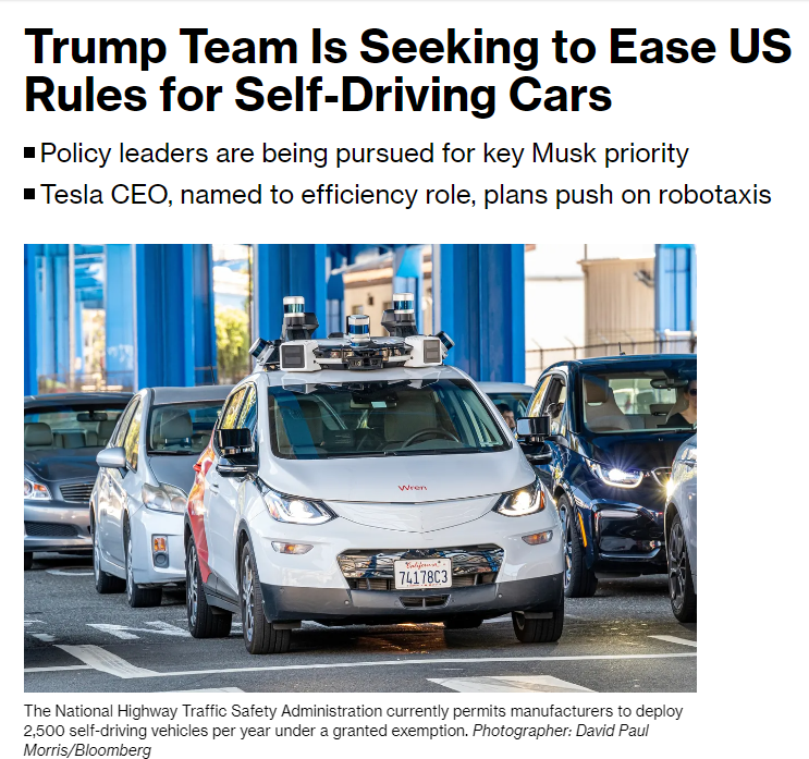 特朗普或寻求放宽自动驾驶汽车限制,马斯克正布局“完全无人驾驶”。