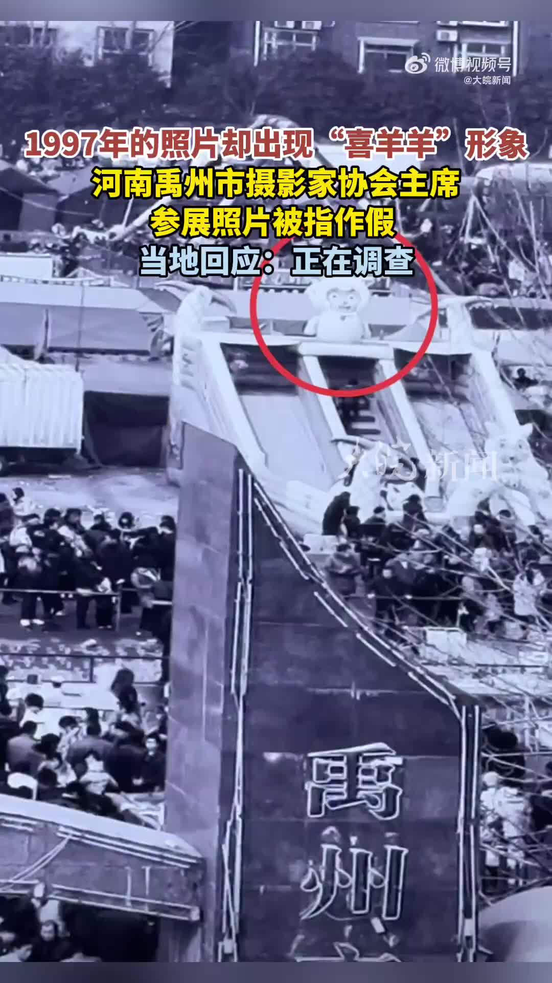 据大皖新闻,标注拍摄于1997年的照片却出现了喜羊羊卡通形象等与年代不符的元素?日前,有网民反映,河南省许昌市禹州市举办的主题摄影大赛作品展中,该市摄影家协会主席耿某的一张参展照片出现了这样一幕,被指作假。对此,当地回应称,正在调查了解此事。
