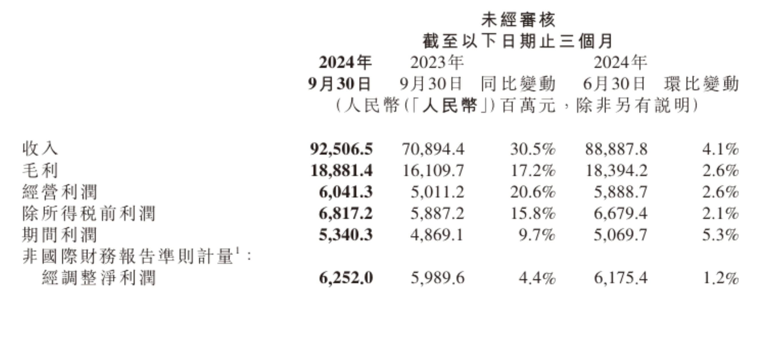 小米集团:2024年Q3营收925.1亿元,去年同期708.94亿元,净利润53.5亿元,去年同期48.74亿元。