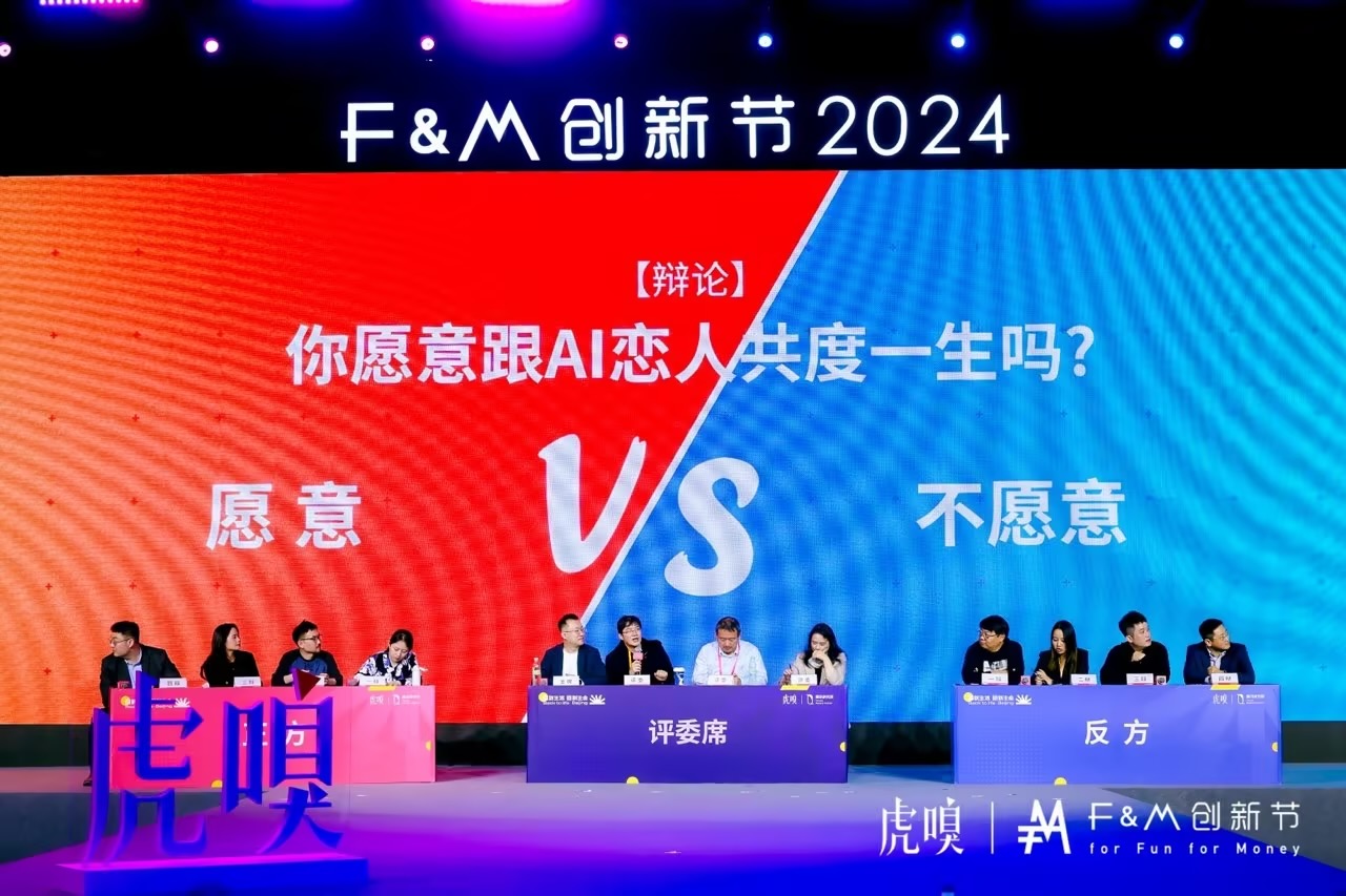 11月23日上午,在2024虎嗅F&M创新节的辩论秀中,辩手们就“是否愿意与AI恋人共度一生”这一话题展开了激烈的讨论。正方主张,AI恋人可以是我们的真爱。根据斯滕伯格爱情三元理论