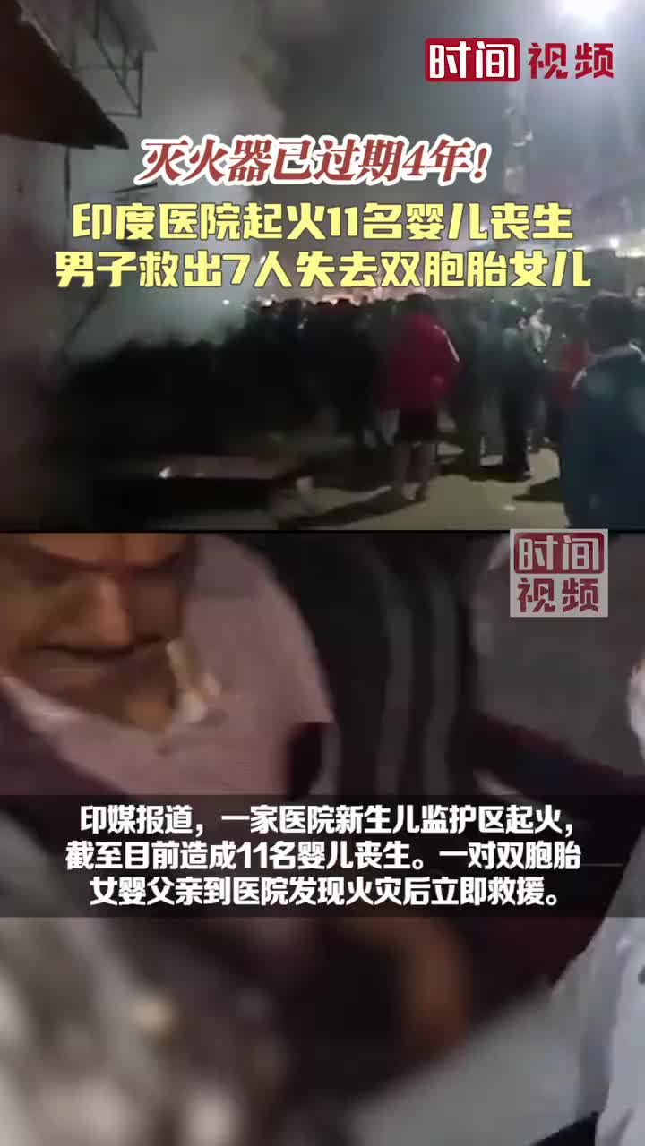 印媒报道,近日,印度北方邦一家医院新生儿监护区起火,截至目前造成11名婴儿丧生。一对双胞胎女婴父亲到医院发现火灾后立即救援。该男子砸破窗户冲进病房救出七名婴儿,却没能救出自己的双胞胎女儿。这令他伤心欲绝。调查显示,火灾由电器短路引起,病房因存放氧气瓶使火势加剧。灭火器早在四年前已经过期。 (via 时间视频)