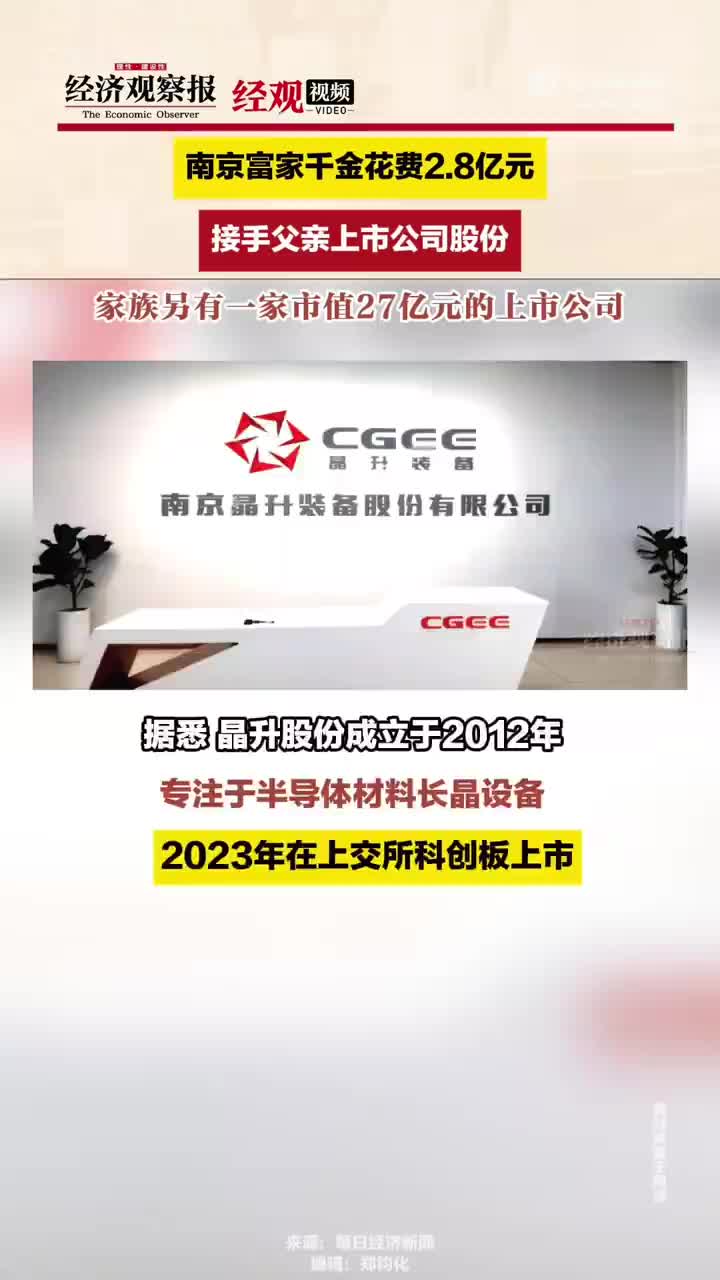 南京富家千金花费2.8亿元接手父亲上市公司股份,家族另有一家市值27亿元的上市公司。