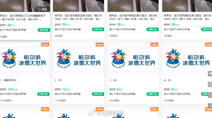 百万起拍糖葫芦摊位?哈尔滨冰雪大世界相关竞拍项目被撤下。
