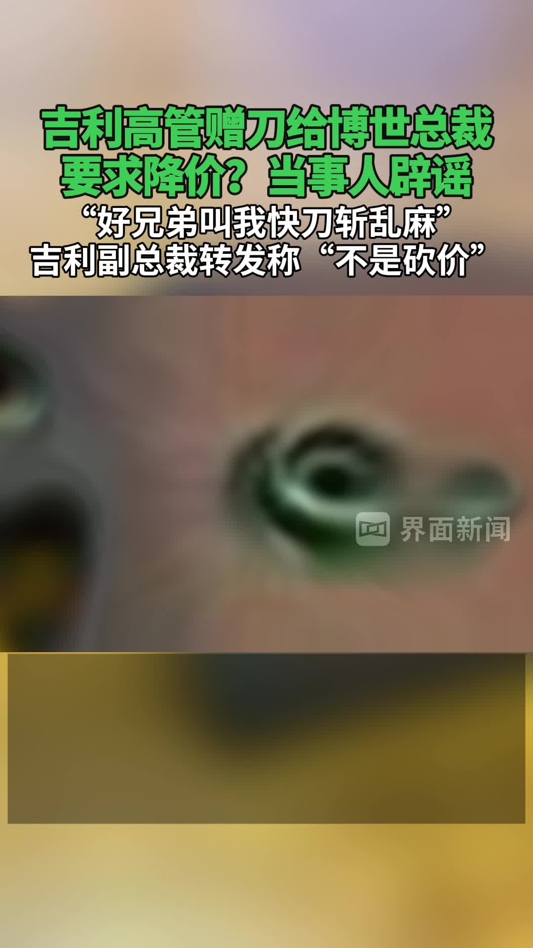 吉利高管赠刀给博世总裁要求降价?当事人辟谣,“好兄弟叫我快刀斩乱麻”,吉利副总裁转发称“不是砍价”。