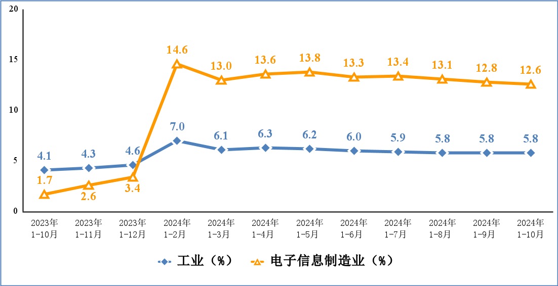 工信部:1-10月规模以上电子信息制造业增加值同比增长12.6%。