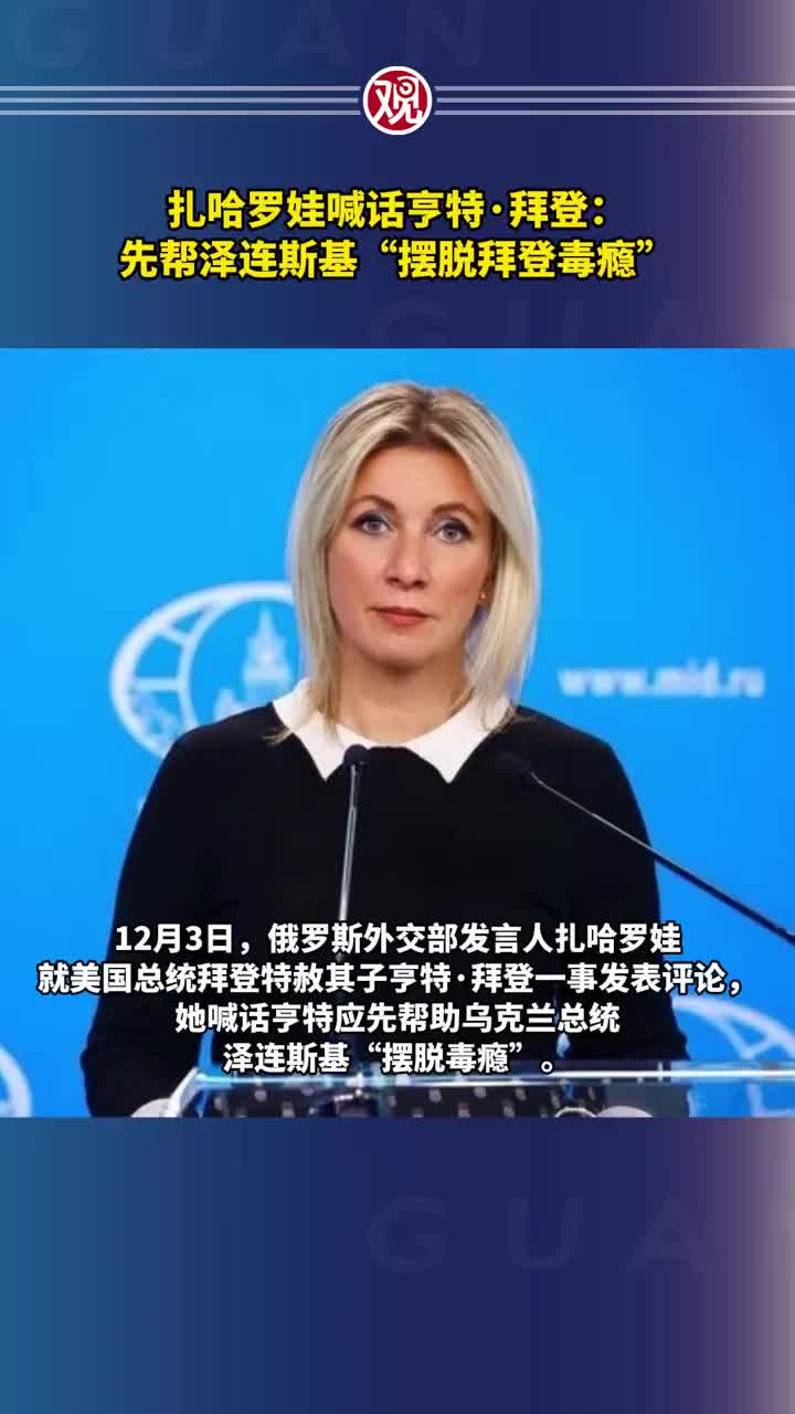 扎哈罗娃喊话亨特拜登:先帮泽连斯基“摆脱拜登毒瘾”。