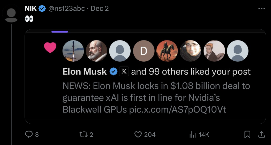 xAI以10亿美元敲定英伟达AI芯片优先交付?马斯克点了个赞。