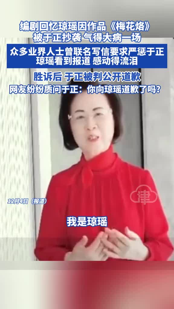 据大河报,12月4日,知名作家琼瑶在台湾去世,终年86岁。琼瑶与于正之间的著作权纠纷持续引发关注。2015年,琼瑶起诉于正抄袭一案终审宣判,于正被判公开道歉并停止传播《宫锁连城》。在琼瑶去世后,知名编剧汪海林发文称,琼瑶女士的《梅花烙》被于正抄袭气得大病一场。