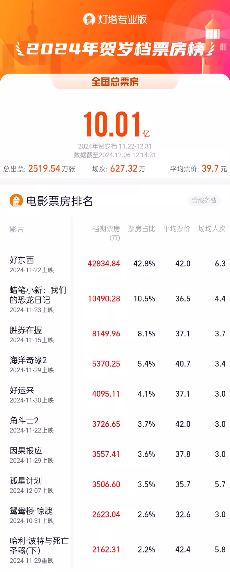 2024贺岁档票房破10亿。