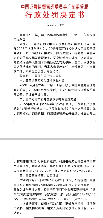 广东证监局对上述员工开出罚单,其中对其利用未公开信息从事有关证券交易行为,没收违法所得22.58万元,并处以80万元的罚款;对其违规持有、买卖证券行为,没收违法所得18.84万元,并处以18万元的罚款。