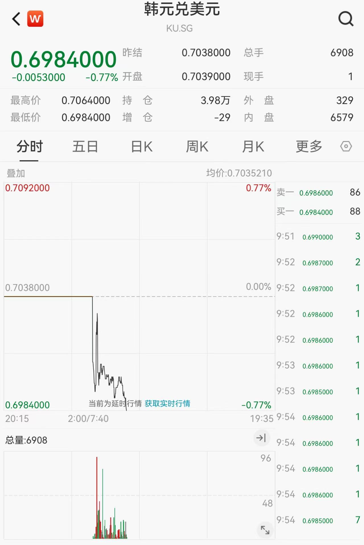 与此同时,韩元继续走弱。截至记者发稿时,韩元兑美元周一跌幅扩大至0.77%。