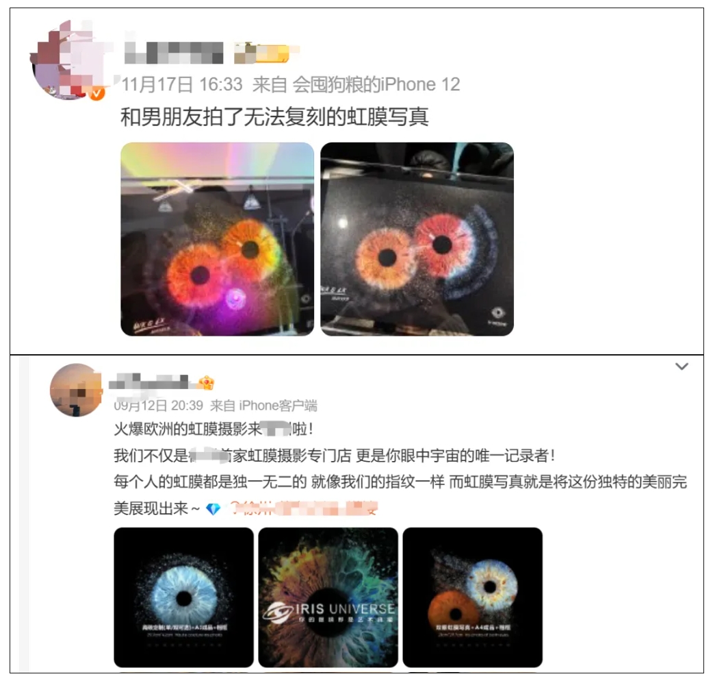 据中国青年报,最近,一种新兴的“虹膜写真”在市场上兴起,还有不少网友及商家在社交媒体发布相关照片。对此,杭州电子科技大学网络安全学院教授徐明表示,虹膜和人的指纹一样,其纹理特征包含着很多独一无二的个人信息。