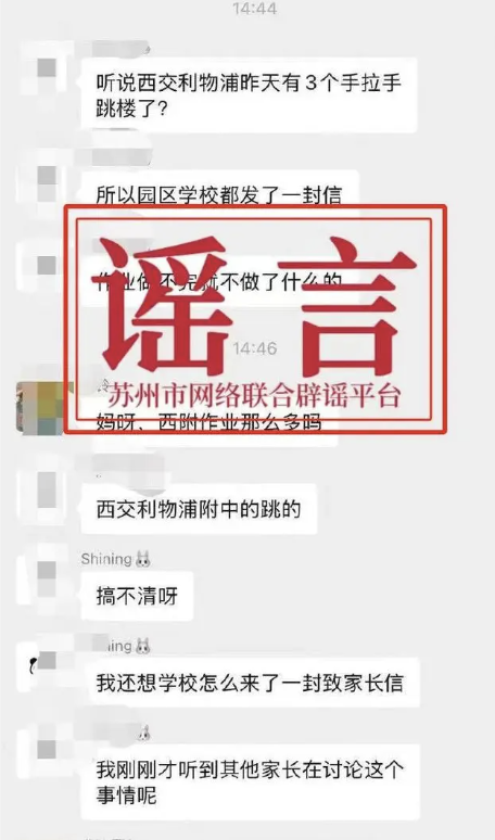 有学生手拉手跳楼?苏州辟谣。