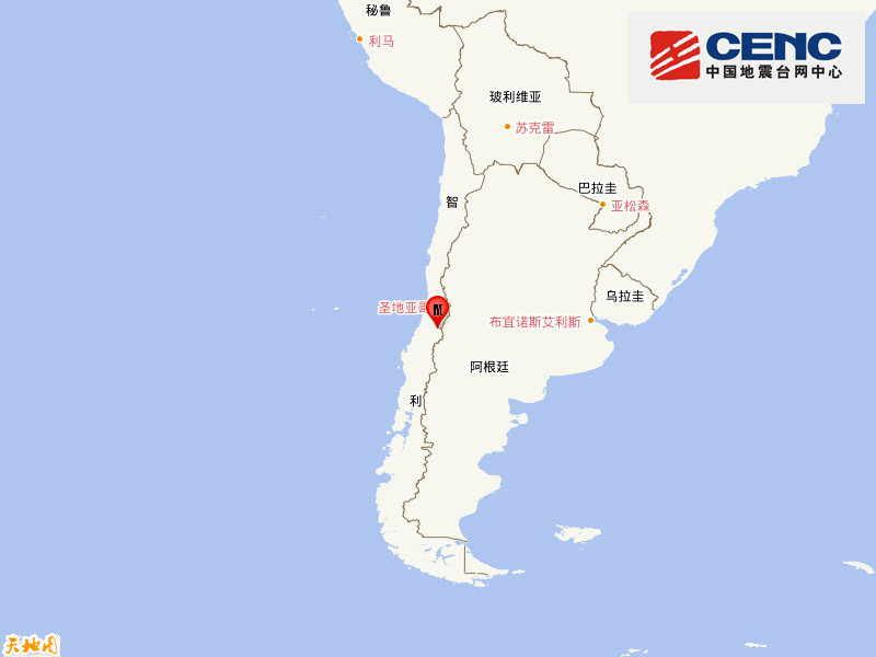 智利中部发生6.3级地震,震源深度110千米。