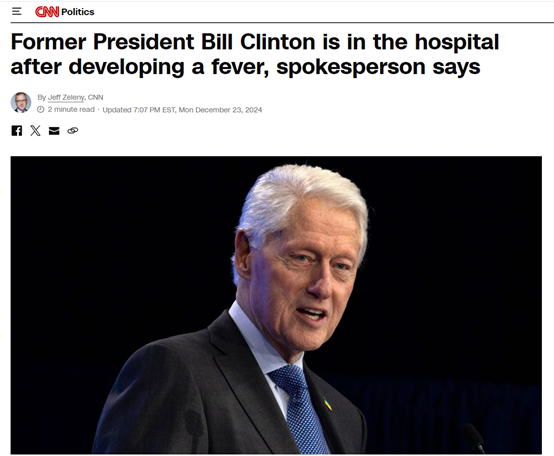 据环球时报援引美国有线电视新闻网(CNN)报道,当地时间23日,美国前总统比尔·克林顿发烧后症状加剧,被送入医院接受治疗。