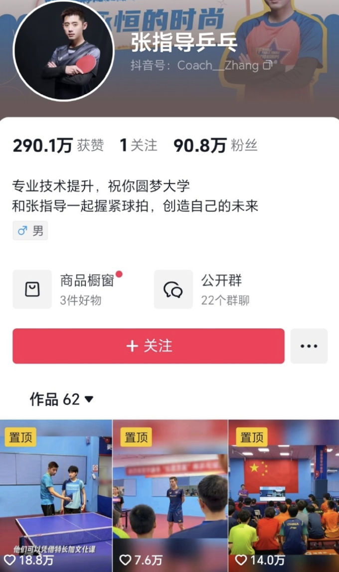 据映象网、蓝鲸新闻报道,乒乓球奥运冠军张继科近日在“张指导乒乓”账号开播,当日不仅介绍了自己新代言的运动品牌,还上架了199元的“张继科乒乓球大师课”。据第三方数据平台显示,12月20日直播时长约3小时,观看人次118万,直播销售额10万-25万元。课程页面显示,课程形式为线上录播,每两周更新一次,适用人群为初中生、高中生,课程大纲分基础篇、入门篇、进阶篇。张继科表示除了录播课外后续也会有直播教学课程。张继科表示:“这个课程也是我从小打球,到省队国家队,包括最后拿到成绩加上现在带队员的一些经验和经历,只要你们认真学,买了我的课程下单肯定涨球。等于我在一对一给你们上课。”
