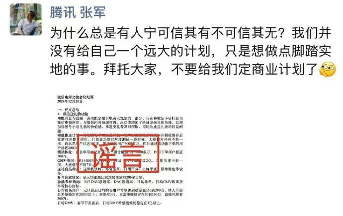 腾讯公关总监张军辟谣:不要给我们定商业计划了。